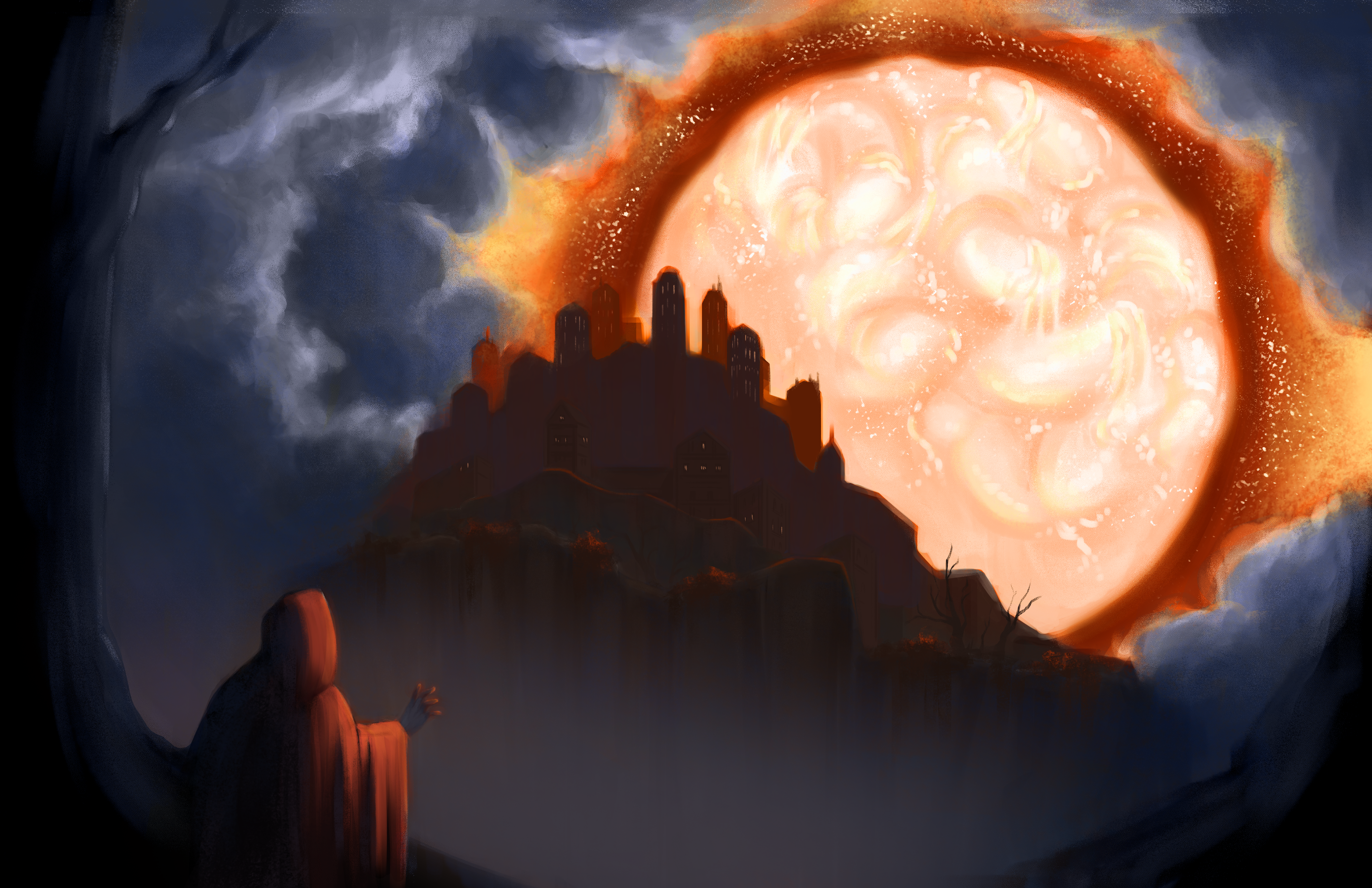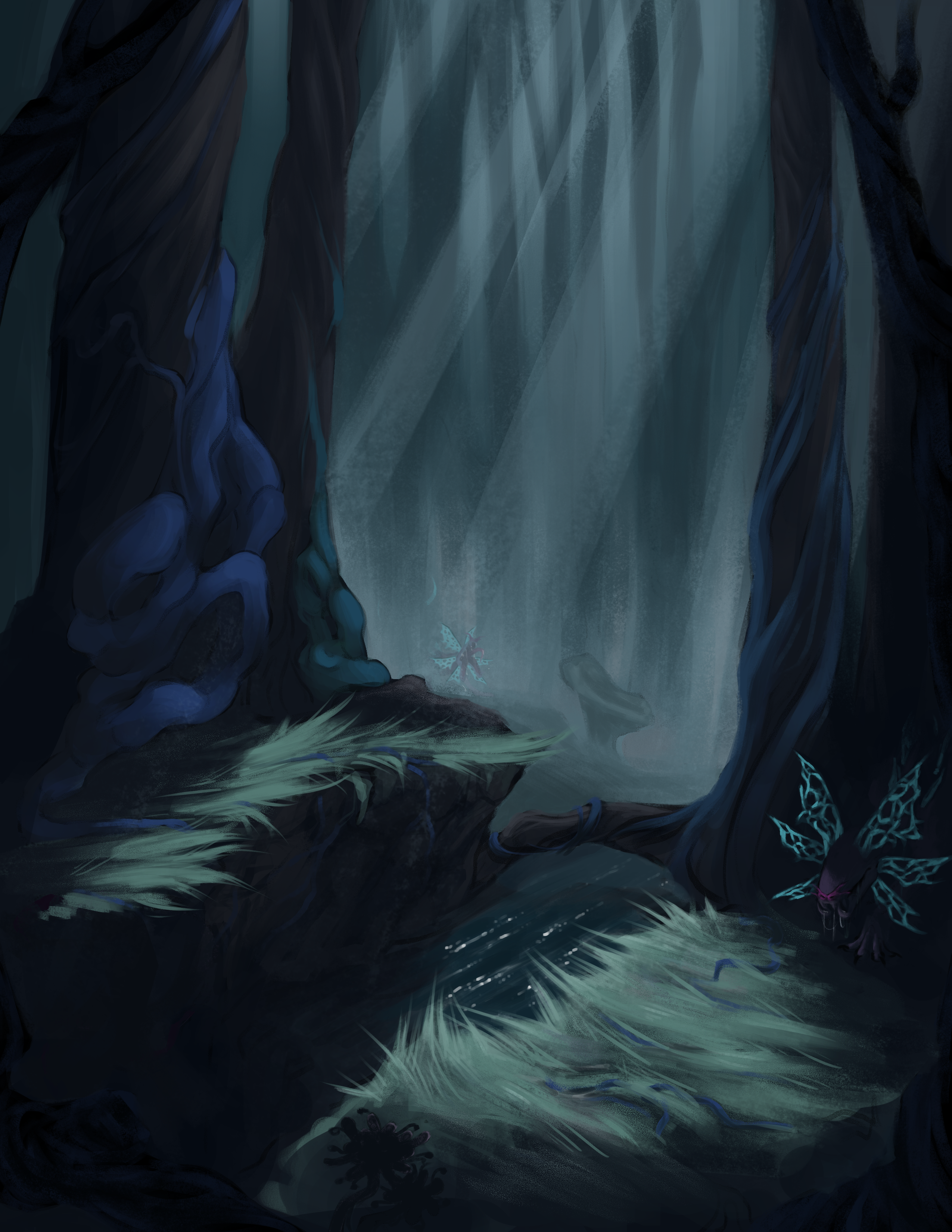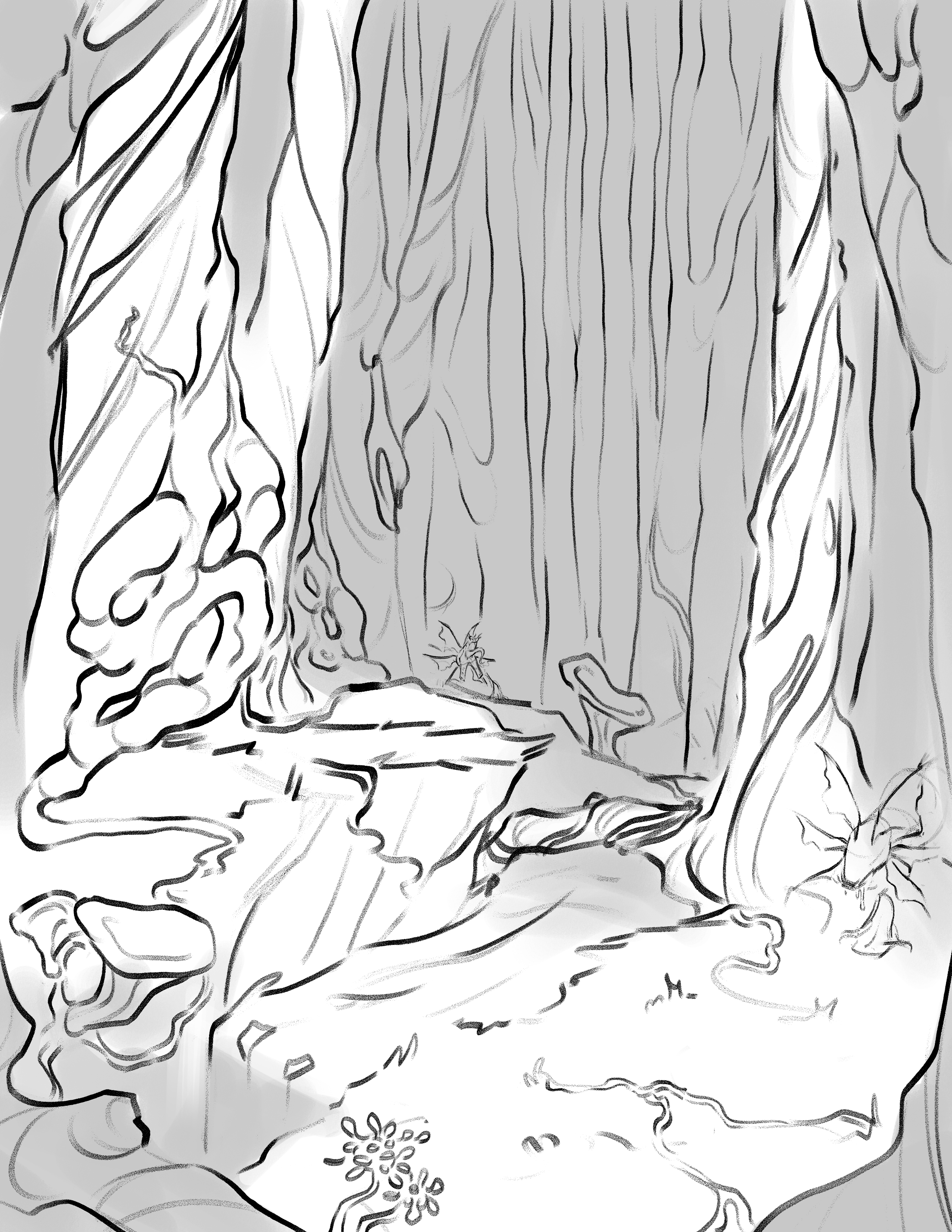 Volunteer illustration for the BFA project “Fate of the Fey”, a thesis project exploring the development of new creatures that could be integrated into Dungeons and Dragons campaigns. I was tasked to design an environment for the creature “Orakzi”. The orakzi used in the piece is designed by Nick Johnson.