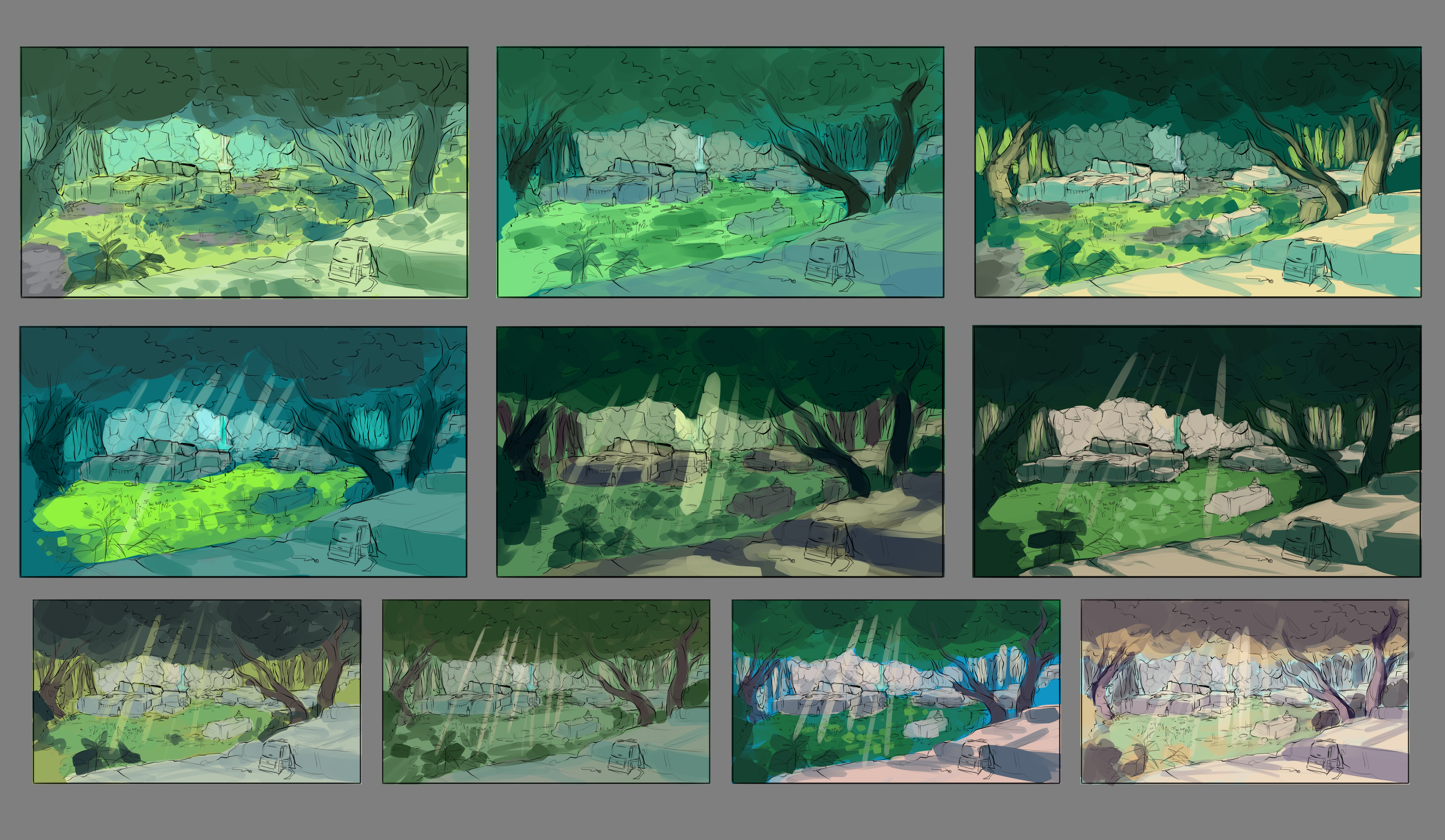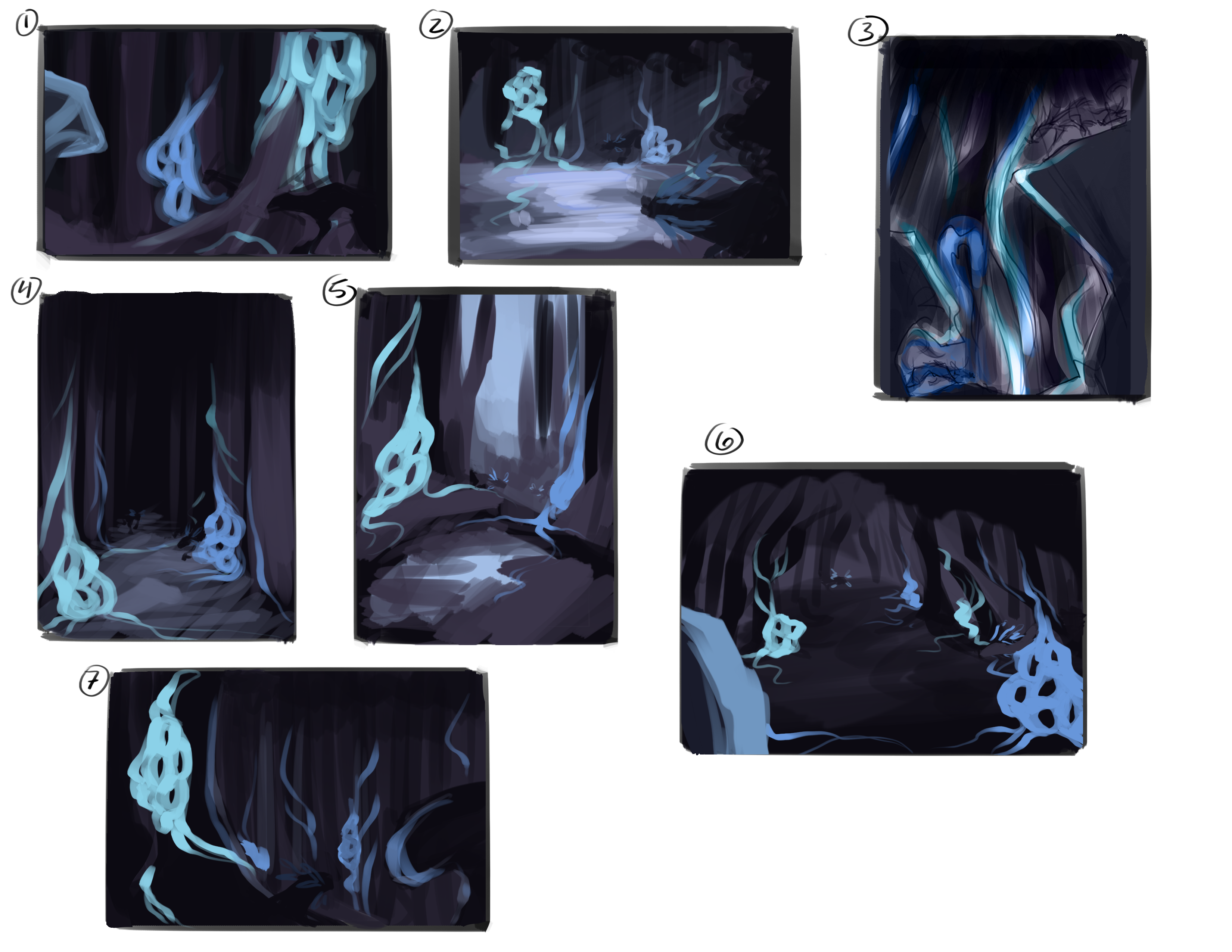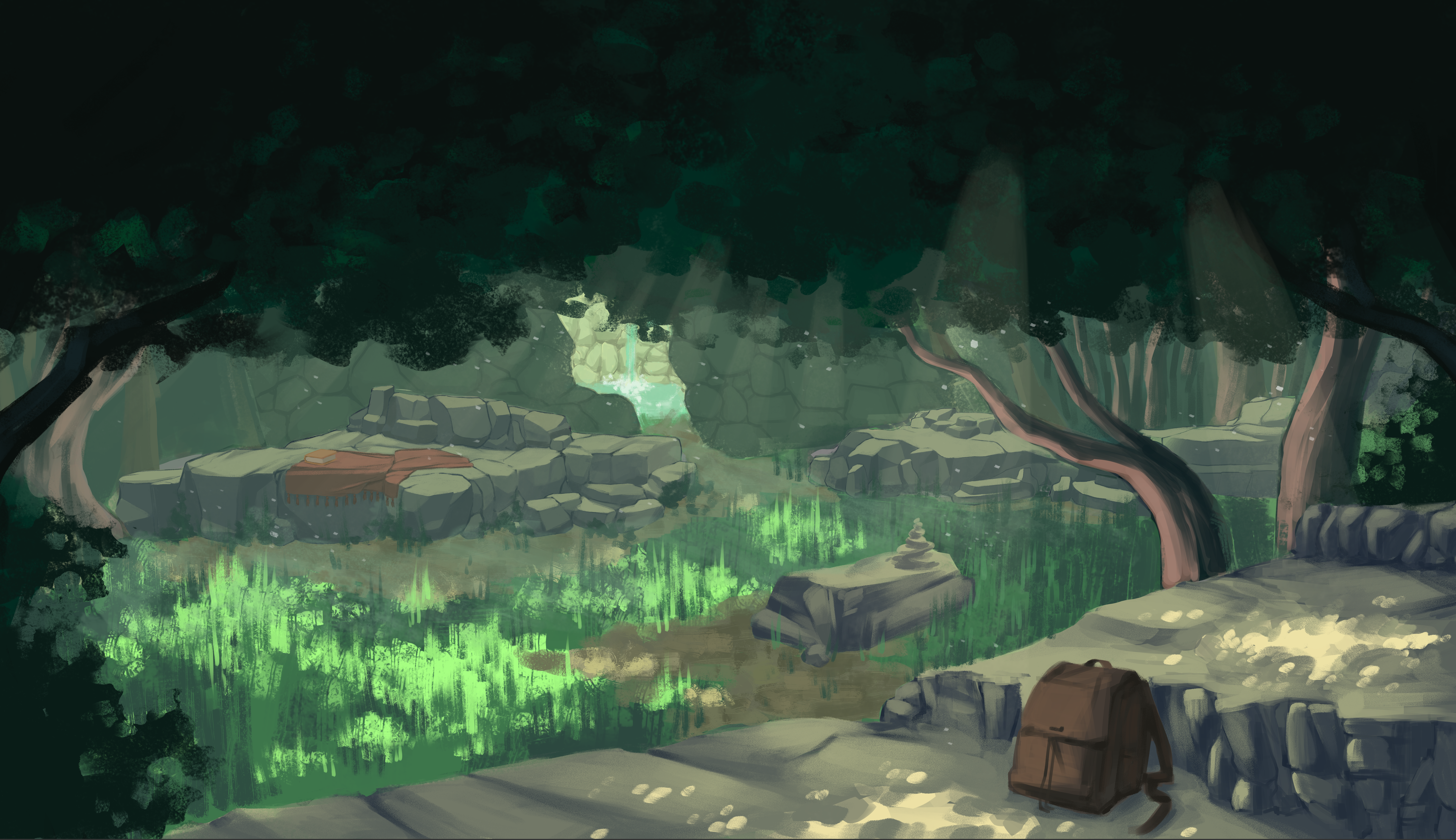 Digital painting class assignment. The prompt was to choose an excerpt of a short story and design an environment described in the text. I chose to visualize a hideout setting described in the short story “The Ninth Skeleton” by Clark Ashton Smith.